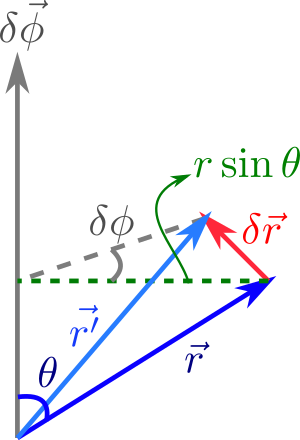 ||δr>| = r⟂·δϕ = r·δϕ·sinθ.