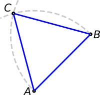 The first exercise that Euclid teaches us is, given a segment, to build a triangle in which all its three sides are equal, and each with the length of our given segment. Such a triangle is called equilateral.