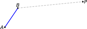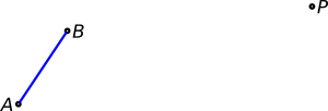 Our initial setup is this, then: a given segment AB to be transported and a fixed point P where we will anchor point B (or A, but we arbitrarily choose B).